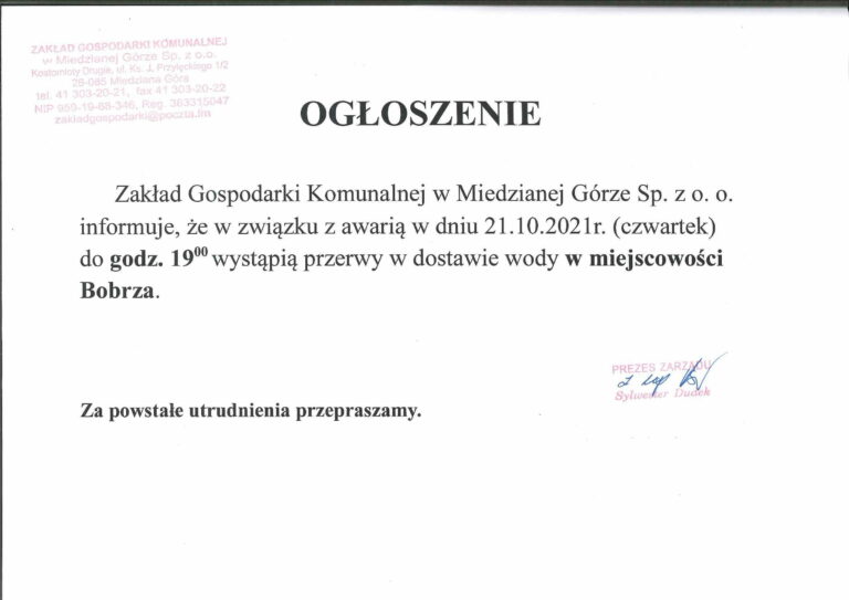 Przerwy w dostawie wody przy ul. Dolomitowej w msc. Miedziana Góra